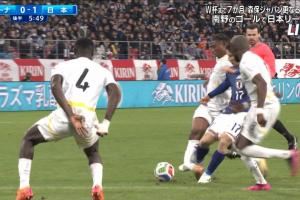 加纳对阵日本的麒麟杯友谊赛,阿布·弗朗西斯封堵田中碧射门时小腿被踢到,发生严重变形,直接被担架抬出场外。
