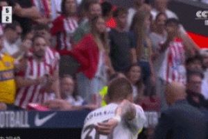 体育资讯9月28日讯 在马德里德比战中,皇马球员马斯坦托诺把球踢上看台,险些击中一名小球迷。